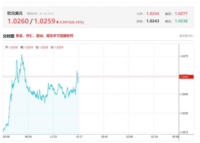 周二(1月14日)亚盘早盘,欧元兑美元上涨,目前交投于1.02附近,截止北京时间15:17分,欧元兑美元报价1.0259,涨幅0.16%,上一交易日欧元兑美元收盘为1.0216。欧洲央行管委、芬兰央行行长雷恩表示,无论美联储采取什么措施,欧洲央行都应继续降低借贷成本。 欧洲央行动态 雷恩表示,在反通胀步入正轨、经