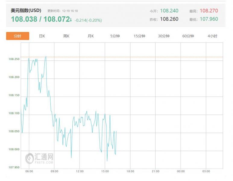 周四(12月19日)亚盘早盘,美元指数最新价报108.09,跌幅0.20%,开盘价为108.25。分析师Catarina表示,进一步观察美联储最新的经济预测,长期联邦基金利率中值上升至3%。 美联储动态 政策制定者一直在口头上支持中性利率现在更高的观点。这最终意味着降息次数会减少。对于明年,美联储上调了增长预测,下