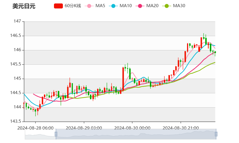 周二(9月3日)亚盘午盘,美元兑日元下跌,目前交投于146附近,截止北京时间11:38分,美元兑日元报价146.63,跌幅0.18%,上一交易日美元兑日元收盘为146.89。8月份,东京的通胀加速,增强了日本央行继续通过提高利率实现政策正常化的理由。 日本央行最新动态: 上周五报告称,东京的消费者物价(不含生鲜