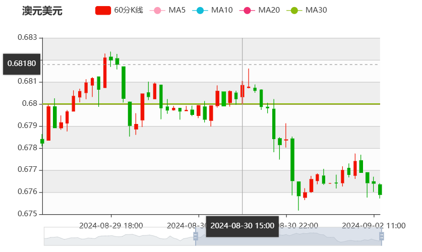 周二(9月3日)亚市午盘,澳元/美元下跌,目前交投于0.67附近,截止北京时间11:33分,澳元/美元报价0.6751,下跌0.61%,上一交易日澳元/美元收盘报0.6792。澳洲联储副主席豪泽表示:澳大利亚的利率在不久的将来可能会保持不变,因为通胀比美国“更具粘性”,这突显了美联储准备放松政策时全球的分歧。 澳洲联储最