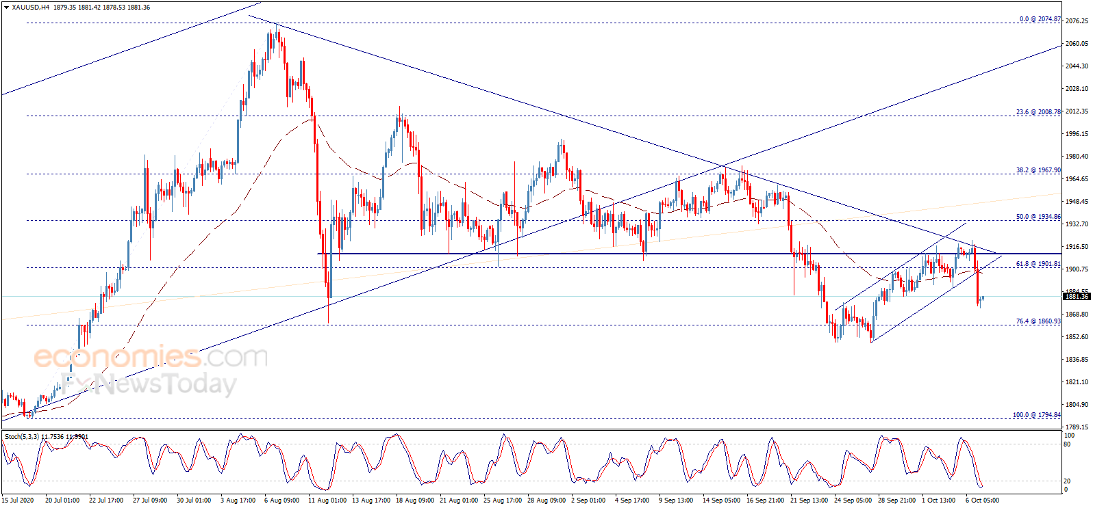 根据Economies.com,只要金价维持在1901.80美元/盎司和1915.00美元/盎司水平下方,后市仍有大跌风险。