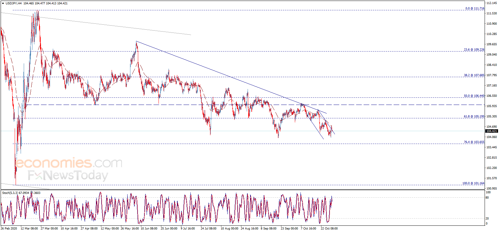 预计今日美元/日元交投将位于支撑位103.60以及阻力位105.00之间。