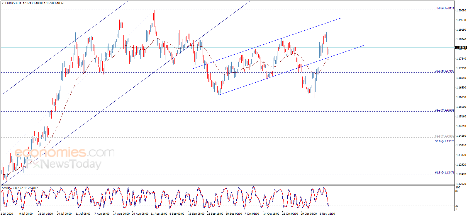 欧元/美元在昨日显著下滑后今日呈现看涨倾向,如图所示,欧元/美元自看涨通道支撑区域反弹,这支持该汇价延续主要看涨趋势,主要目标瞄准1.2011区域。