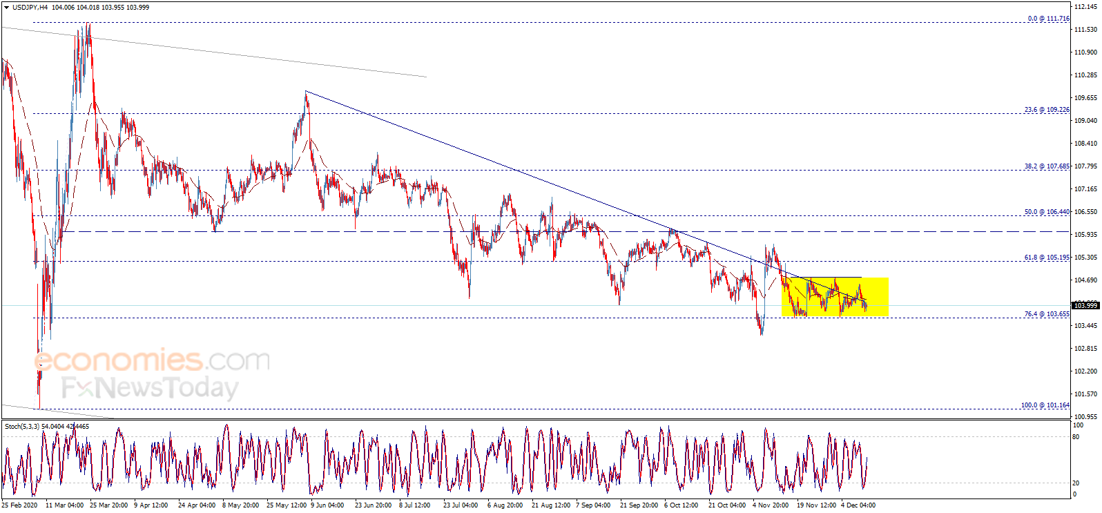 预计今日美元/日元交投将位于支撑位103.40以及阻力位104.75之间。