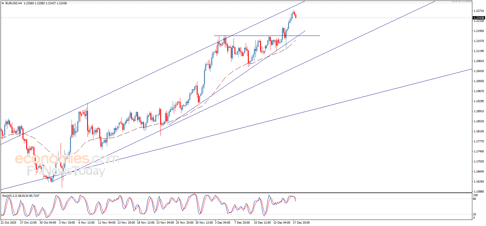 欧元/美元开始今日交易后下跌,此前该汇价一度接近看涨通道阻力。欧元/美元可能出现短暂的看空修正,并测试1.2175水平,然后再度转为上涨。