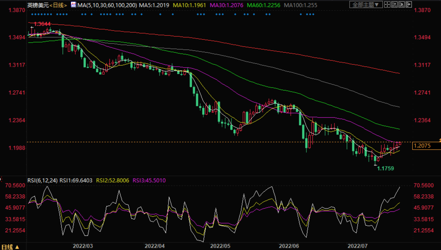 美元指数连续第四个交易日下跌,截至发稿时,盘中下跌0.22%,约为106.25。在此过程中,美元指标从悲观的美国国债收益率以及近期走软的美国数据中获得了线索。