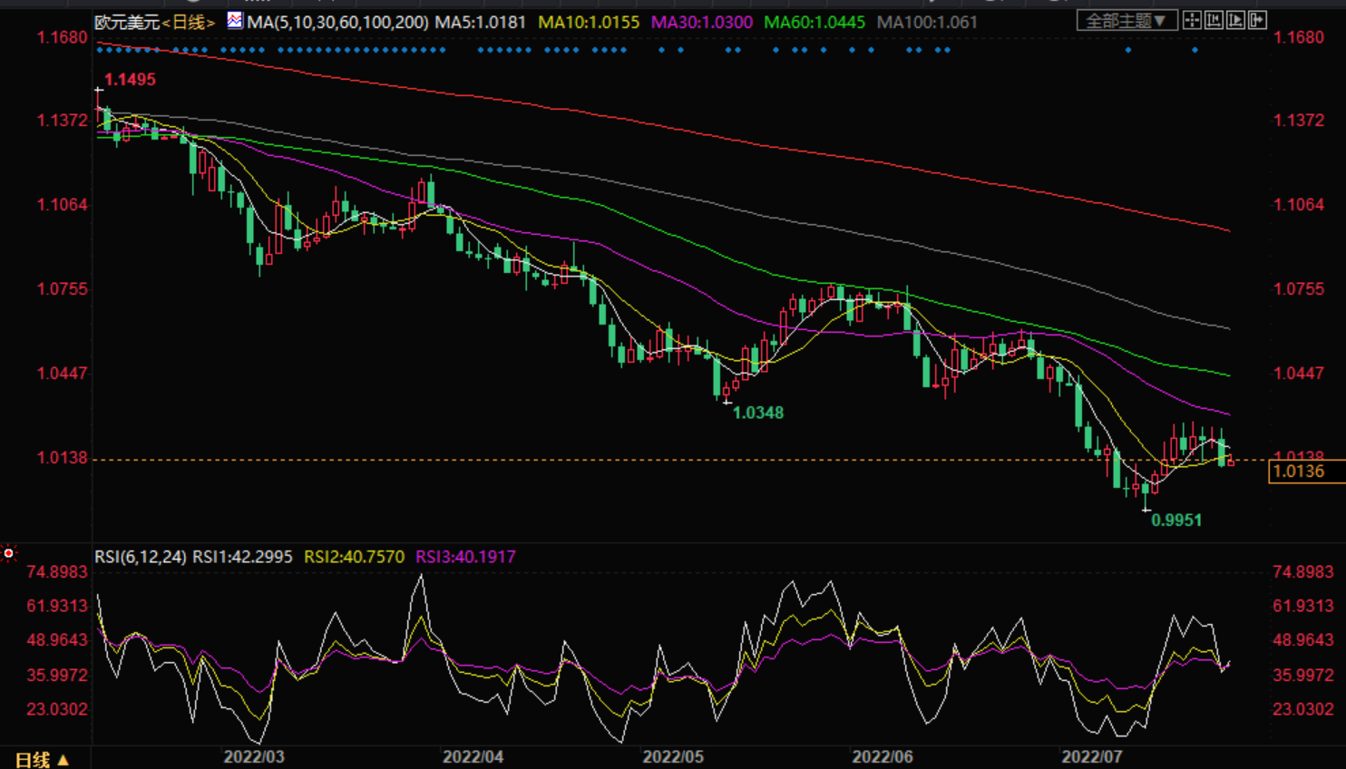 技术上,欧元兑美元上涨了0.27%,报1.0142,突破1.0278(7月21日高点)后下一目标是1.0438(55日移动均线),随后是1.0615(6月27日高点)。另一方面,初步支撑位于1.0107(7月26日低点),其次是1.0000(心理关口),最后是0.9952(2022年7月14日低点)。