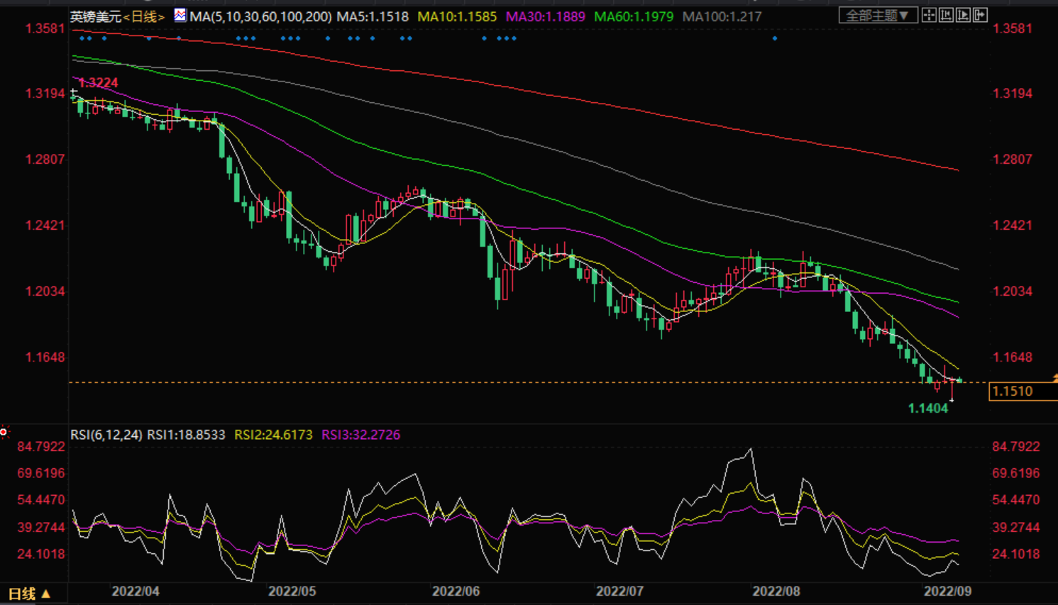 尽管有加息的趋势,但对经济增长的警告压倒了对货币的任何支持,同时特拉斯总理的政策不一定符合投资者的需求,也不一定看涨英镑。今年以来,英镑兑美元已经下跌了15%以上。英国央行将于下周召开会议,预计将加息50甚至75个基点。