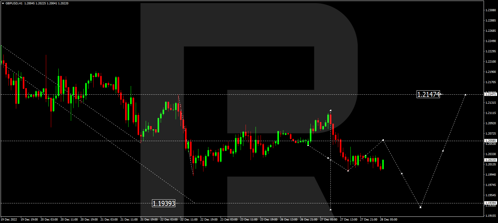 货币对完成了下跌的冲动,跌至1.2002。今天不排除回调至1.2058的链接。在达到这一水平后,该货币对可能会下跌至1.1940,然后修正至1.2140,最后下跌至1.1850。目标是第一位的。