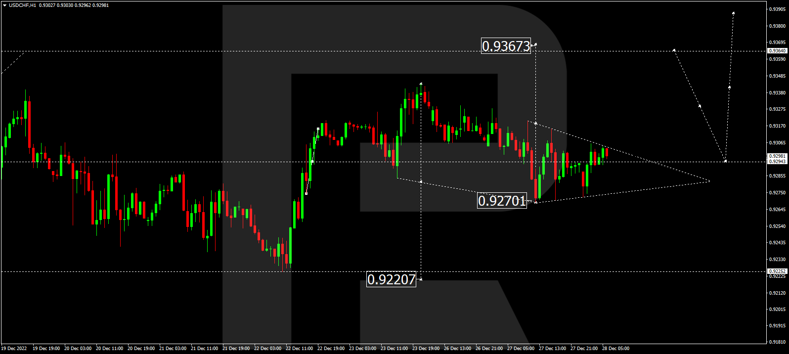 货币对完成了上涨至0.9315的冲动,并修正至0.9272。实际上,在这些水平上形成了一个盘整区间。随着向下逃逸,通往0.9222的路径将打开。随着向上逃逸,上涨的浪潮可能会持续到0.9366。目标是第一位的。然后报价可能会下降到0.9292,并增长到0.9400。