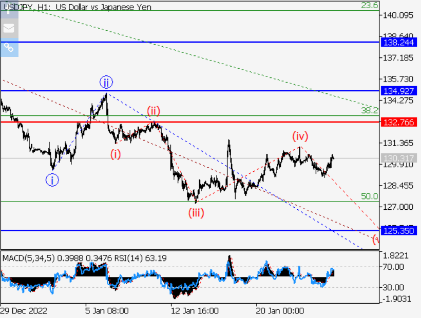 货币分析:日线图上较大度数(3)向上的第三波结束发展,(3)第五波作为其组成部分形成。下降修正似乎继续发展,作为H4图上的第四波(4),(4)的波C形成作为它的一部分。在H1图上,C的iii次较小的第三波似乎继续形成,随着C的iii次波(iv)开始展开,C的iii次波(v)完成了局部修正。如果这一假设是正确的,该货币对将继续下跌至125.35 - 121.52。在这种情况下,132.76的水平非常关键,因为突破将使该货币对继续上涨至134.92 - 138.24的水平。