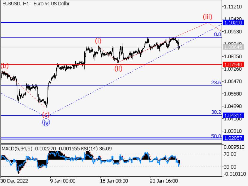 另一种情况:突破1.0754下方的盘整将允许该货币对继续下跌至1.0431 - 1.0285。