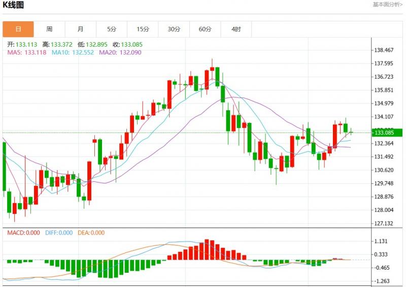 今日周四,美元兑日元报133.104,跌幅0.02%。
