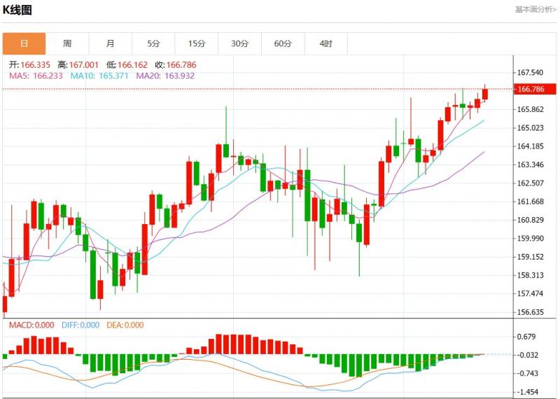 今日周二,英镑兑日元报166.819,涨幅0.28%。
