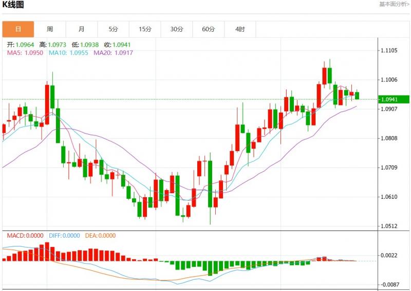 今日周五,欧元兑美元报1.0942,跌幅0.21%