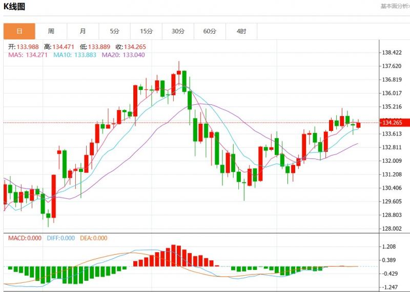今日周一,美元兑日元报134.284,涨幅0.23%