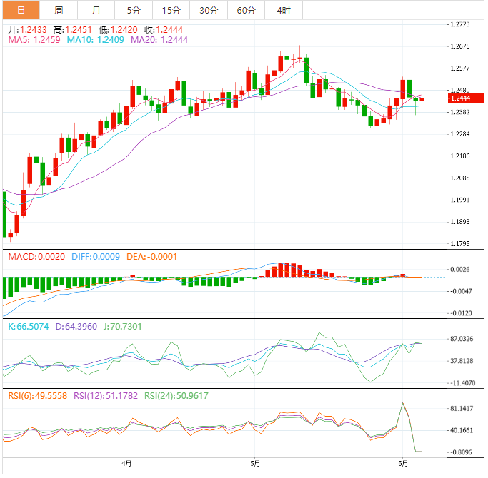 另一方面,英国5月标准普尔全球/CIPS服务业PMI和综合PMI终值分别升至54.0和55.2,高于最初预期的53.9和55.1。最近,英国BRC 5月份同店零售额同比增幅从此前的5.2%下滑至3.7%。此外,巴克莱银行的最新调查显示,由于食品价格上涨限制了可自由支配的支出,英国5月份消费者支出同比增长3.6%。