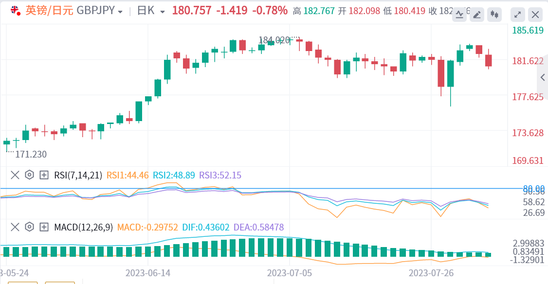 反之,如果回升至7月31日的高点183.20上方,则英镑/日元将向7月05日的高点184.00逼近。跌破后者将使汇价进入未知领域。