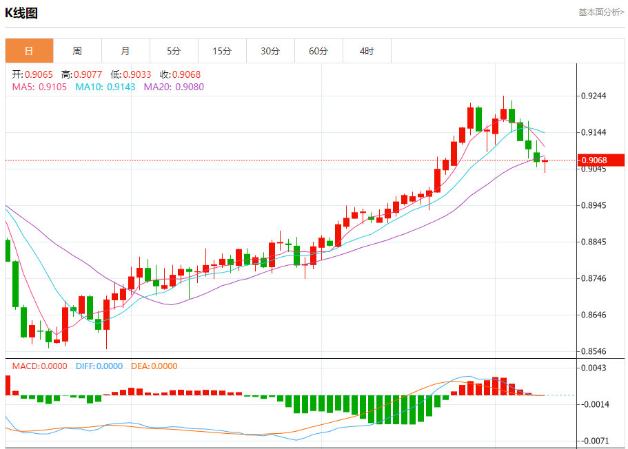 今日周二,澳元兑美元报0.6400,跌幅0.17%;美元兑加元报1.3600,涨幅0.07%;美元兑瑞郎报0.9071,涨幅0.06%。