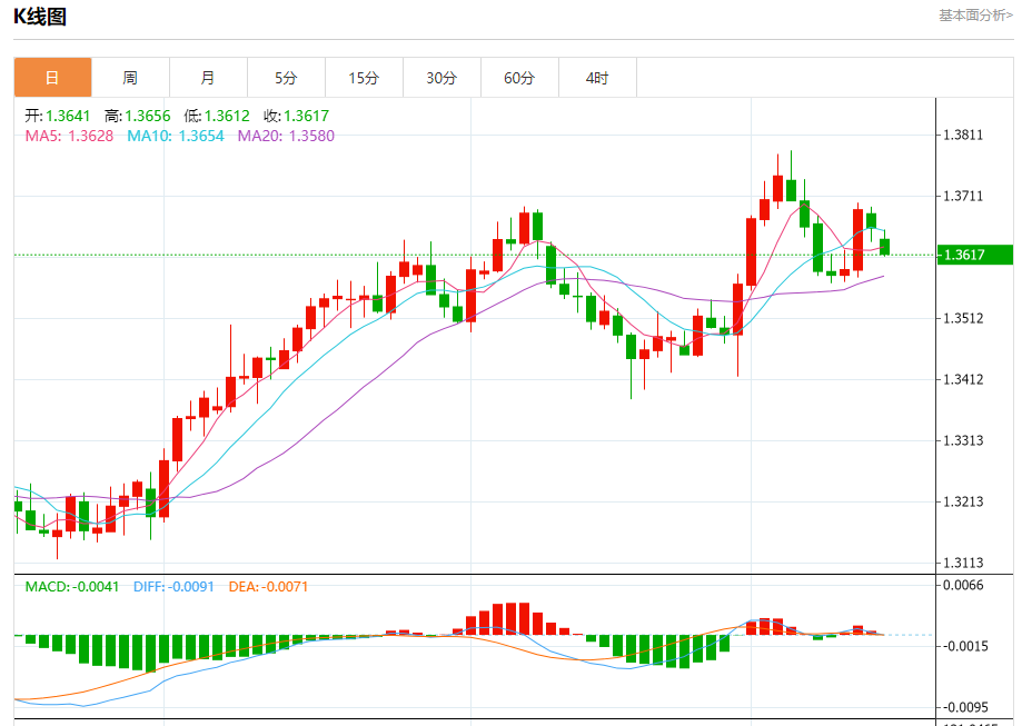 支撑位:1.3625 1.3605 1.3580