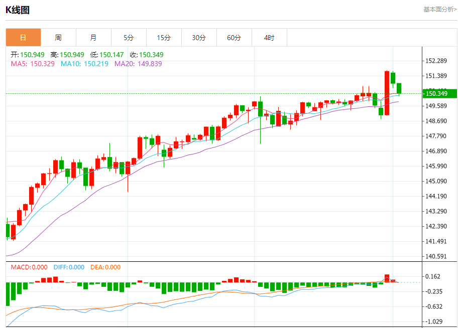 今日周四,欧元兑美元报1.0633,涨幅0.60%;英镑兑美元报1.2194,涨幅0.35%;美元兑日元报150.367,跌幅0.39%。