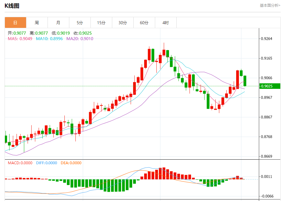 今日周四,澳元兑美元报0.6448,涨幅(跌幅)XX;美元兑加元报1.3789,跌幅0.48%;美元兑瑞郎报0.9026,跌幅0.57%。
