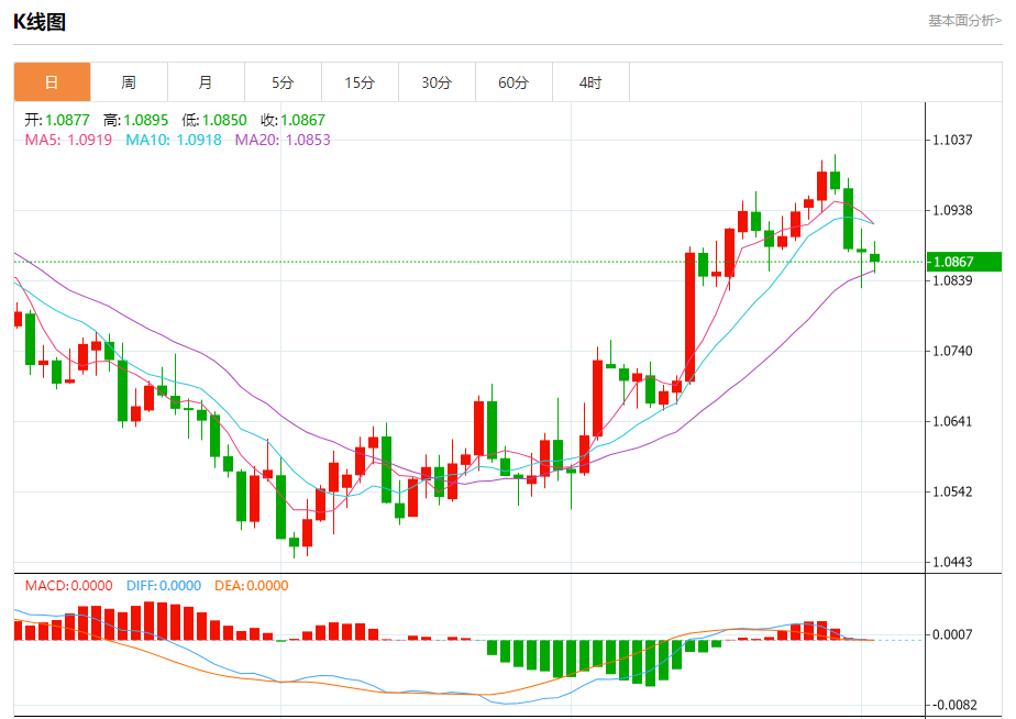 支撑位:1.0850 1.0825 1.0800