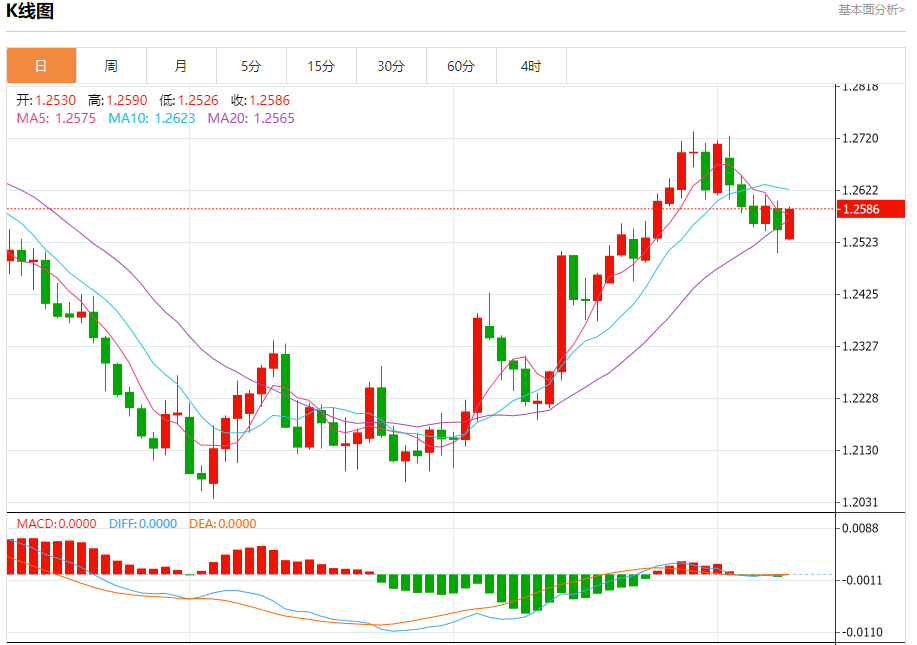 技术点评:只要1.2560阻力位不被突破,向下跌破1.2520位置的风险很高。