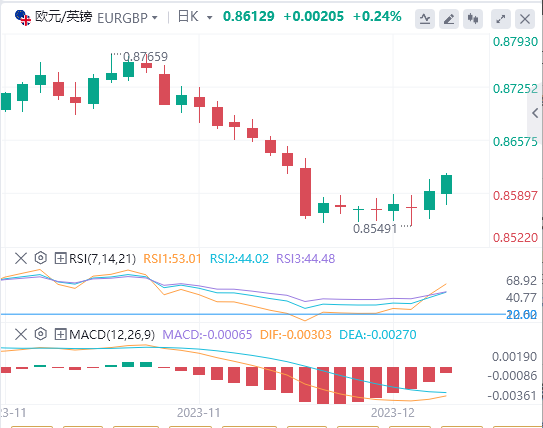 技术面显示,欧元/英镑正在走高,阻力位在0.8610和0.8650。支撑位在0.8550和0.8500区域。