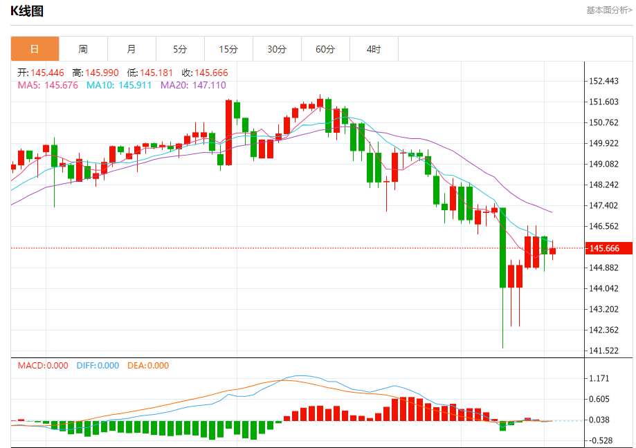 今日周三,欧元兑美元报1.0788,跌幅0.06%;英镑兑美元报1.2523,跌幅0.32%;美元兑日元报145.676,涨幅0.14%。