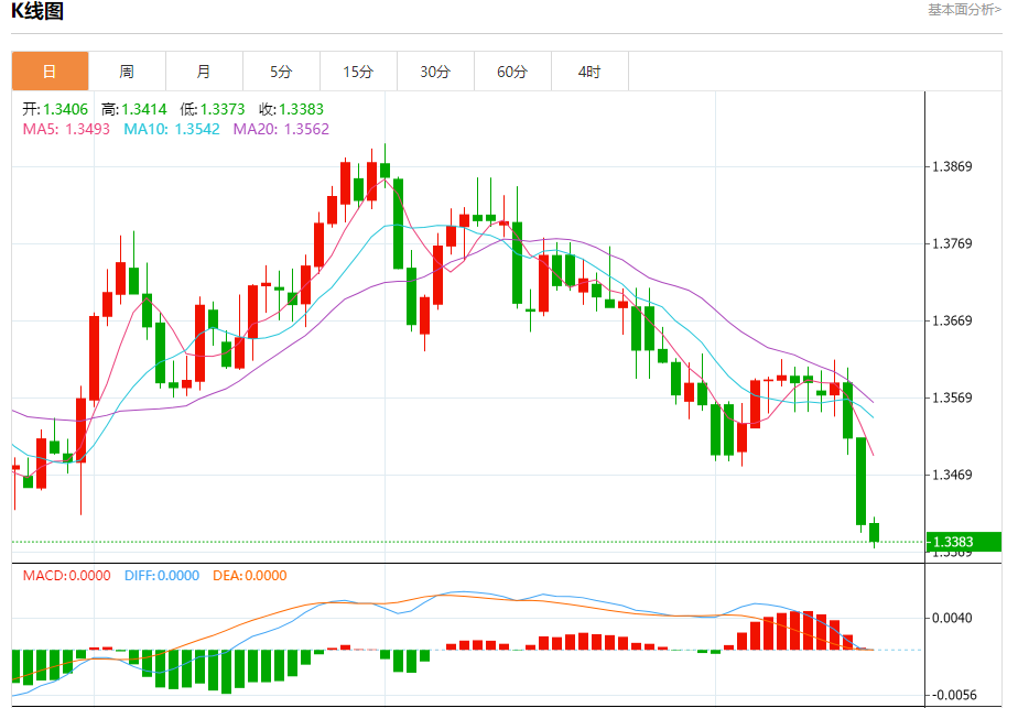 技术点评:跌破1.3400,为空头信号,向下的目标将会是1.3360。