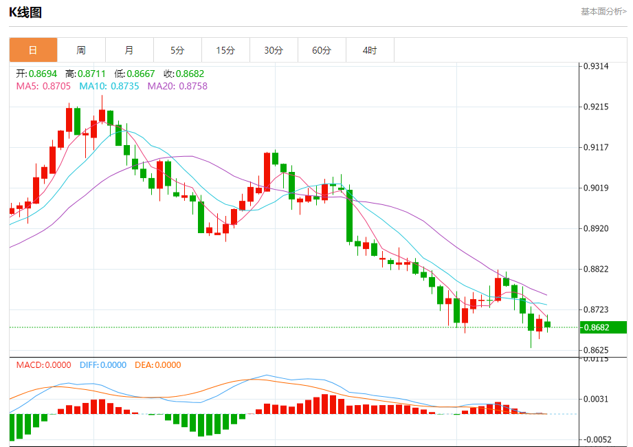 支撑位:0.8665 0.8630 0.8600