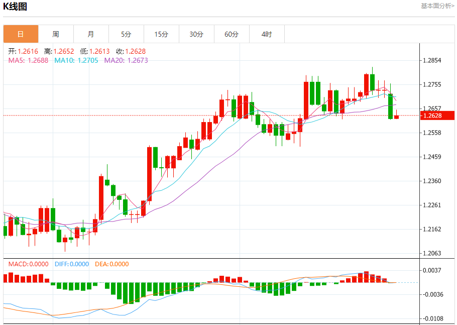 支撑位:1.2610 1.2590 1.2560