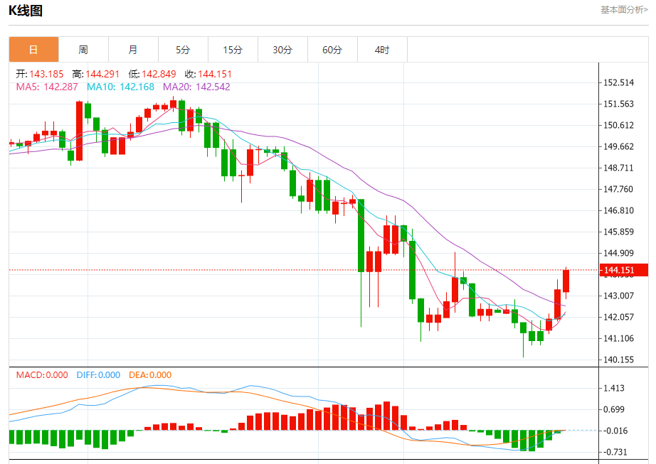 今日周四,欧元兑美元报1.0951,涨幅0.27%;英镑兑美元报1.2690,涨幅0.19%;美元兑日元报144.195,涨幅0.62%。