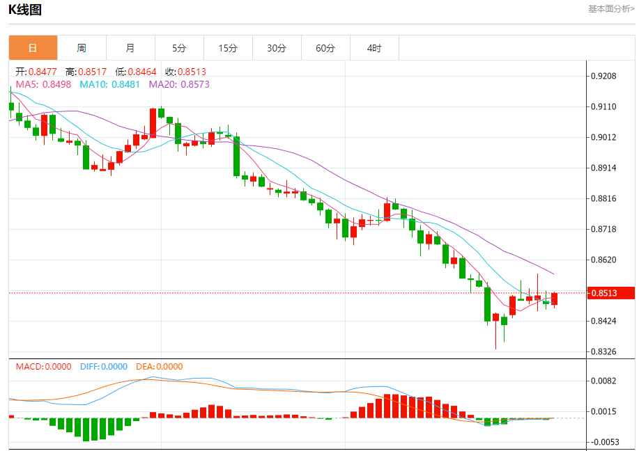 支撑位:0.8455 0.8440 0.8420