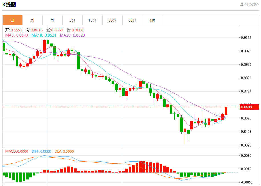 今日周二,澳元兑美元报0.6601,跌幅0.88%;美元兑加元报1.3465,涨幅0.29%;美元兑瑞郎报0.8609,涨幅0.58%。