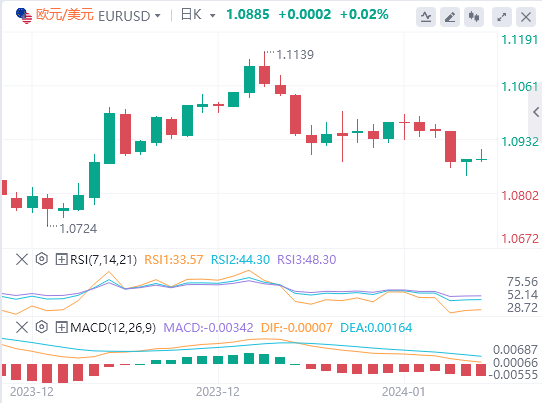 1月18日,欧元/美元小幅上涨0.22%,达到1.09030。4小时图显示枢轴点在1.09252,关键阻力位在1.09559、1.10003和1.10383。直接支撑位在1.08452、1.08006和1.07552。