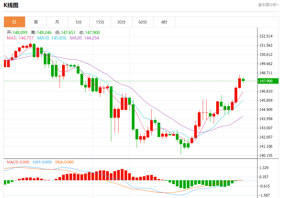 今日周四,欧元兑美元报1.0876,跌幅0.06%;英镑兑美元报1.2674,跌幅0.02%;美元兑日元报147.935,跌幅0.14%。