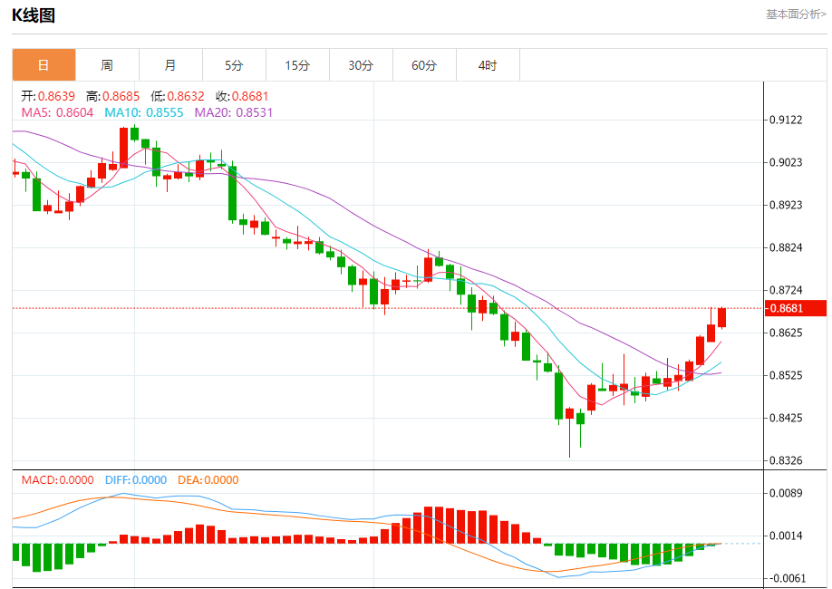 阻力位:0.8700 0.8685 0.8665