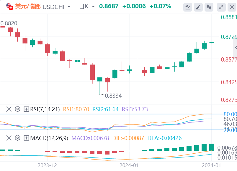 随着瑞士法郎在2023年底经历快速升值,瑞士央行正在敲响警钟,强调过度升值可能对瑞士经济构成威胁。瑞郎走强有可能迅速推动通胀走低。投资者正等待瑞士生产者和进口价格,以进一步推动瑞士消费者价格通胀。