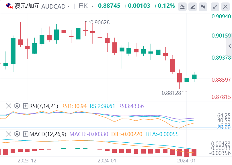 技术上,澳元/加元突破0.8875支撑位表明,在触及0.9545至0.8562的50%回撤位0.9054后,从0.8562反弹至0.9063。只要55DEMA(目前为0.8920)保持不变,现在预计还会进一步下跌。下一个目标是重新测试0.8562低点。现在评估还为时过早,但进一步的下行加速将增加突破0.8562的可能性,以从0.9991(2021年高点)恢复更大的下跌趋势。