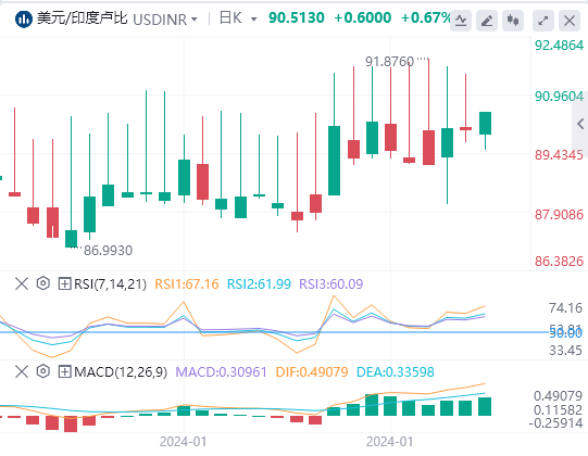 印度卢比当日走强。美元/印度卢比在82.78至83.45之间的两个月下降趋势通道内坚持区间震荡主题。美元/印度卢比恢复看跌周期,因为该货币对在日线图上回到关键的100周期指数移动平均线(EMA)下方。此外,14天相对强弱指数(RSI)低于50.0中线,暗示支撑位更有可能突破而不是守住。