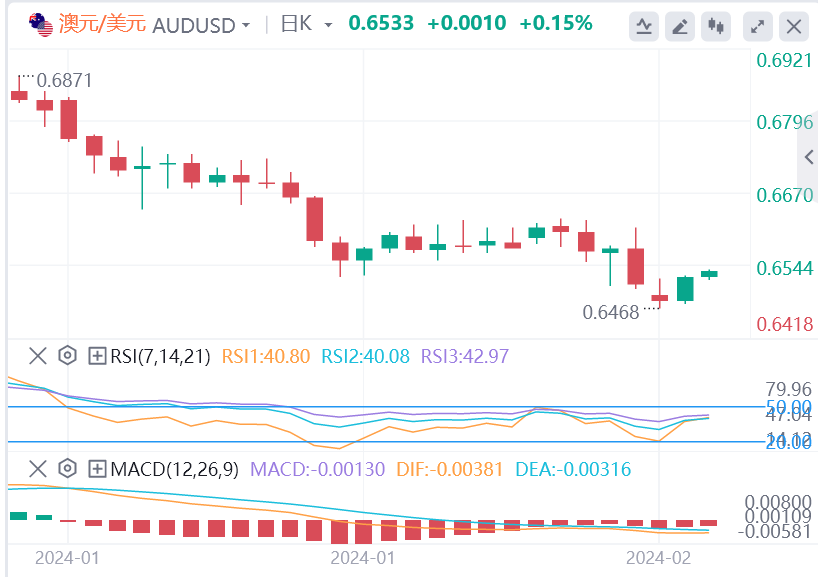 尽管澳元/美元日线有所回升,但仍连续第六周处于负区,自2023年12月高点0.6870附近以来下跌了约4%。