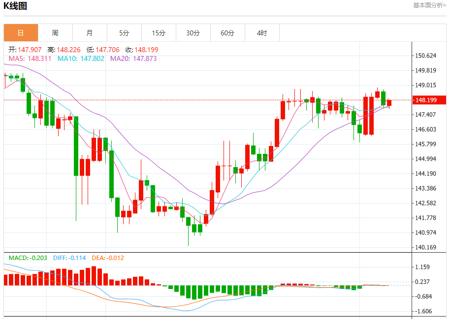 今日周三,欧元兑美元报1.0768,涨幅0.13%;英镑兑美元报1.2625,涨幅0.21%;美元兑日元报148.221,涨幅0.19%。
