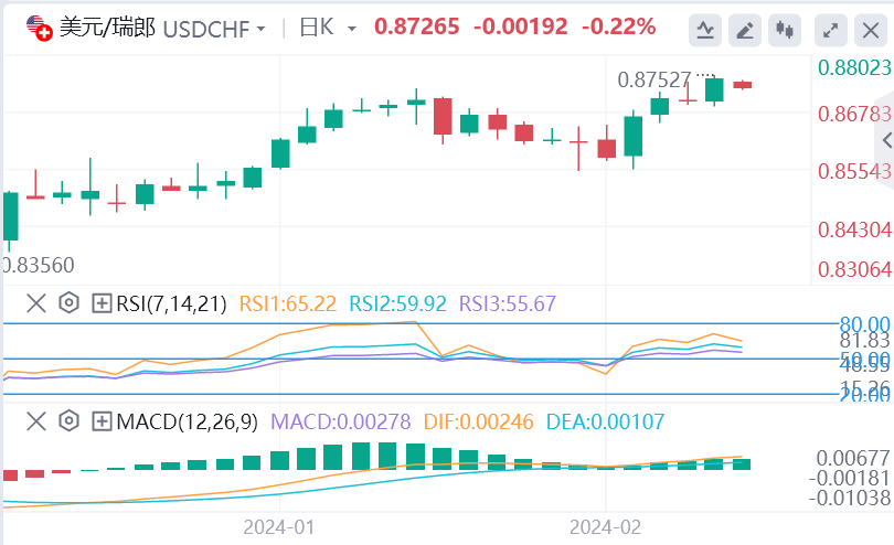 瑞士国家银行(SNB)决定将其关键利率维持在1.75%,标志着其近期紧缩阶段的结束。升值的瑞士法郎通过降低与进口商品和服务相关的费用,在抑制通货膨胀方面发挥了作用。今年的预测表明,预计通货膨胀率将保持在2.0%的门槛以下。因此,市场分析师普遍预计,瑞士央行可能会在2024年9月首次降息。