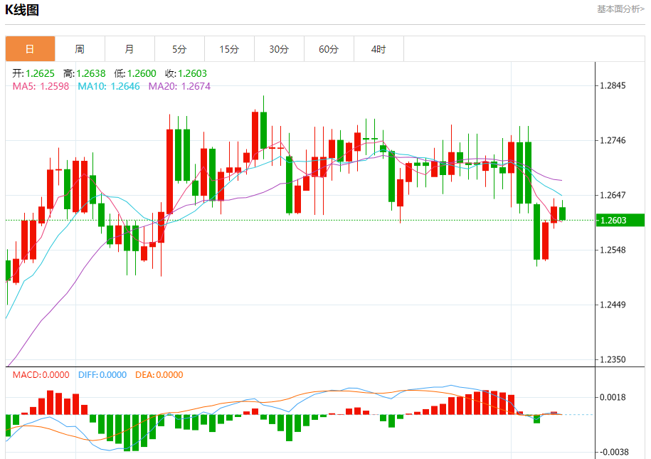 支撑位:1.2605 1.2585 1.2565