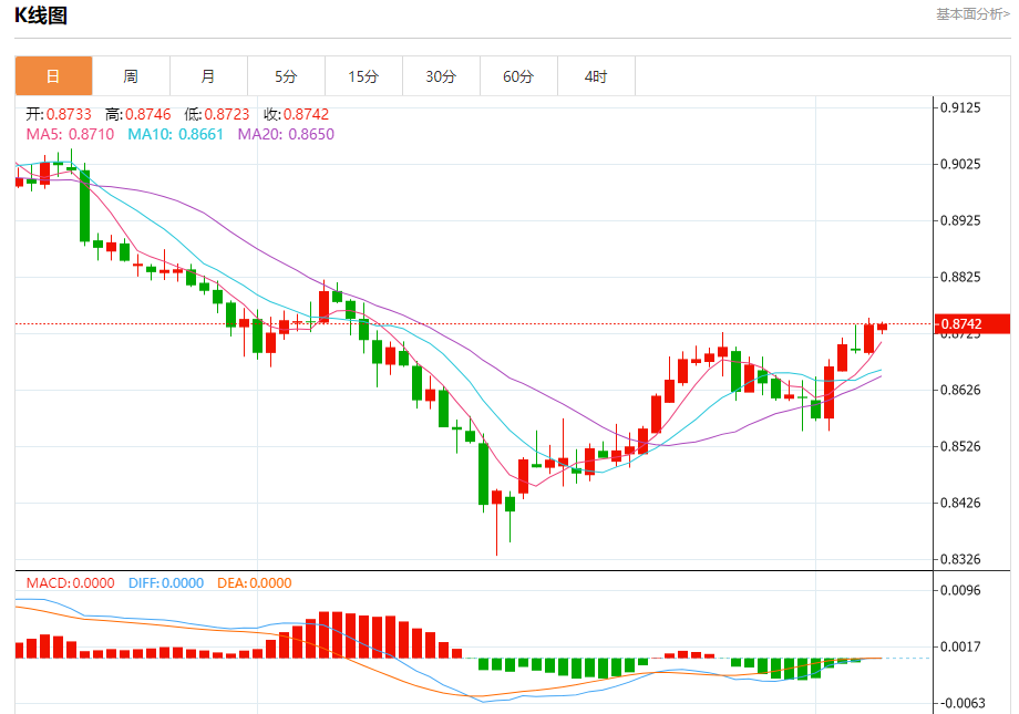 今日周四,澳元兑美元报0.6491,跌幅0.44%;美元兑加元报1.3482,涨幅0.14%;美元兑瑞郎报0.8744,涨幅0.01%。