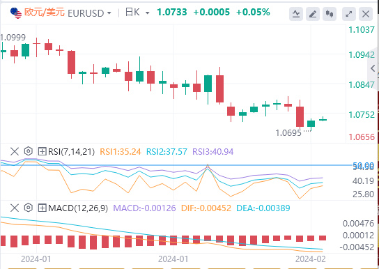 欧元/美元目前交投于1.07350,在过去24小时内小幅上涨了0.07%。今天的枢轴点设定在1.07440,表明该货币对处于关键时刻。直接阻力位在1.07440,然后是1.07553,以及更强的障碍在1.07770。不利的一面是,支撑位在1.06937,随后的水平在1.06772和1.06583。50天指数移动平均线(EMA)1.07605和200天EMA1.08320提供了进一步的背景,表明枢轴下方略有看跌倾向。鉴于这些技术指标,欧元/美元的整体趋势似乎在1.07440下方看跌,因此需要密切关注动能的潜在变化。