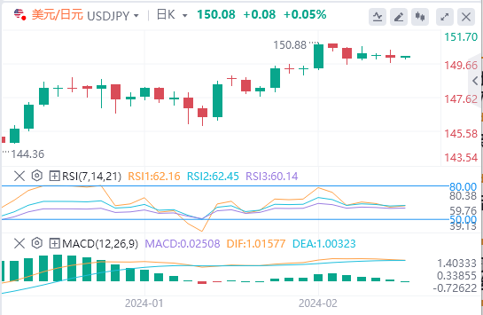 过去三个交易日当中,美元/日元维持盘整于149.90-150.00区间,市场担心日本当局可能采取干预措施而上行受限。然而,如果多头将美元/日元明确推升至150.00上方,这将为迈向2月13日的高点150.88铺平道路,随后是151.00大关。