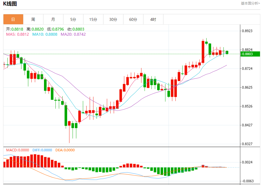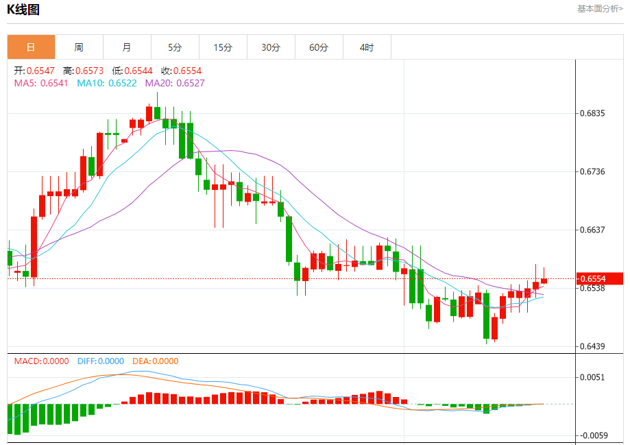今日周三,澳元兑美元报0.6555,涨幅0.09%;美元兑加元报1.3529,涨幅0.04%;美元兑瑞郎报0.8804,跌幅0.19%。